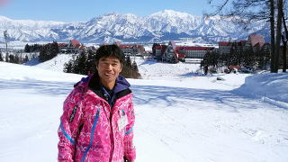 | 園主の冬のアルバイト、スキーインストラクター 今年のスクールのウェアはピンク色♡です。 |